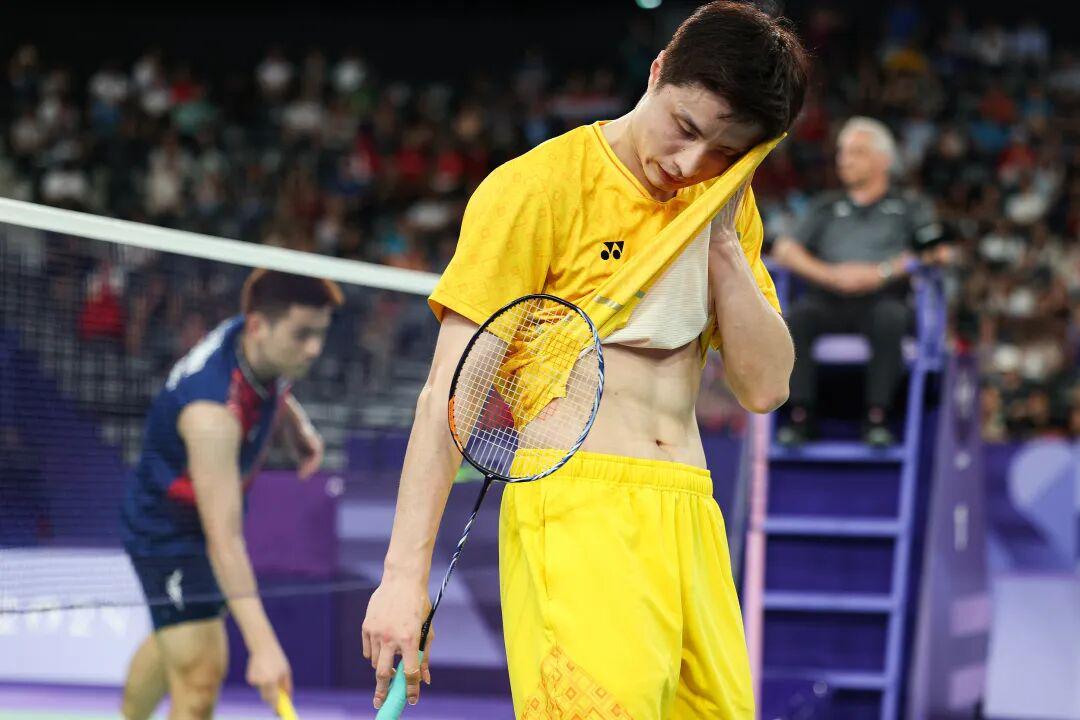 把时针拨回一年前的2024年的巴黎奥运会上,同样的场地上,石宇奇在男单1/4决赛被同样的对手昆拉武特直落两局击败。整场比赛“石头”都没有组织起有效的进攻,赛后他难掩失望,泪洒现场。